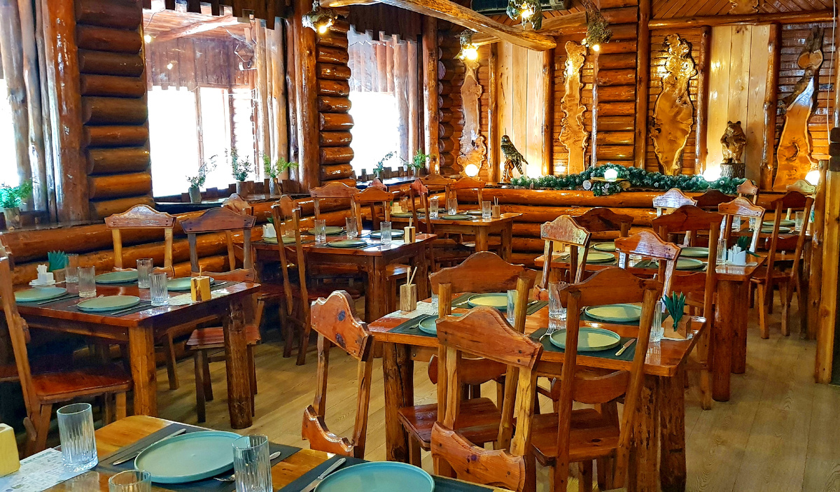 Это я, на самом деле, очень отстаю от актуальных радостей жизни. Мои друзья и знакомые в этом душевном месте зажигали, отплясывали и угощались уже лет ...дцать как. А я все время проезжала мимо по разным причинам. Но в процессе майского пешего похода и патриотических "скитаний" по проселочным дорогам, о которых я сегодня целый вечер рассказывала, возникла и укрепилась мысль, что усталым путникам просто необходимо подкрепиться перед долгой дорогой в обратном направлении. И лучшего повода... и лучшего места, чем ресторан гостеприимного комплекса "Лесной", нам в округе было не найти. На территории комплекса есть и небольшой отель, и детские площадки, и беседки для отдыха. Но нас сегодня интересовала гастрономическая часть рекреации. Пошли знакомиться) Зашли в сруб и глаза натурально "разбежались". Антураж, основанный на натуральном дереве и лесной эстетике, вдохновил остаться. И мы не пожалели. Да, некоторые современные отзывы на работу ресторана оказались объективными - отдельные блю