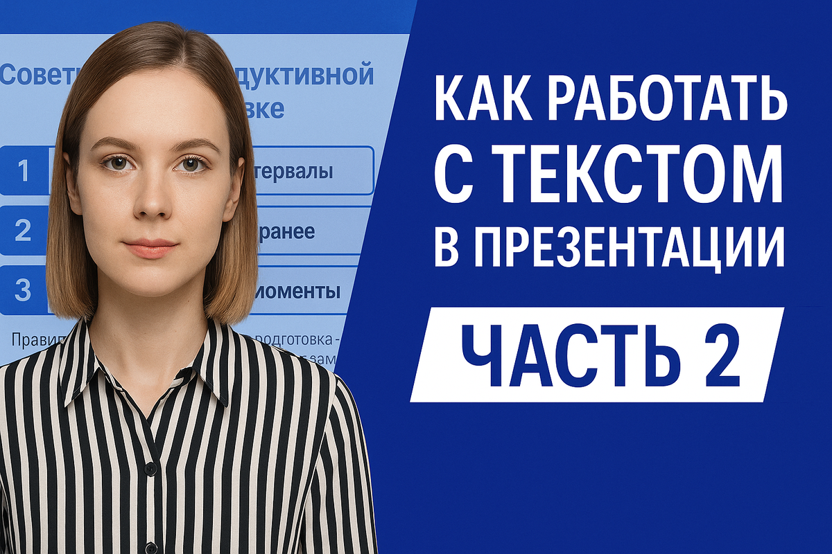 Часть 1. Ошибки при работе с текстом и базовые принципы оформления. Часть 2. Продвинутые приёмы работы с текстом и таблицами Узнайте, как профессионально оформлять текст и таблицы в PowerPoint: иерархия, акценты, выбор шрифтов и цвета. Секреты, которые делают слайды эффектными и удобными для восприятия. В первой части мы разобрали основные ошибки и базовые правила работы с текстом: Но это только начало. Если вы хотите, чтобы ваши презентации выглядели действительно профессионально, нужно освоить и продвинутые приёмы: В этой статье мы шаг за шагом разберём, как превратить обычный слайд в инструмент, который работает на вашу цель. На слайде зритель тратит 3–5 секунд, чтобы понять суть. Если акценты расставлены неправильно, внимание уходит в сторону. Например: ❌ «Регулярные перерывы помогают снизить усталость и повысить продуктивность». ✅ «Регулярные перерывы помогают снизить усталость и повысить продуктивность». — Основной текст — нейтральный (чёрный, серый).