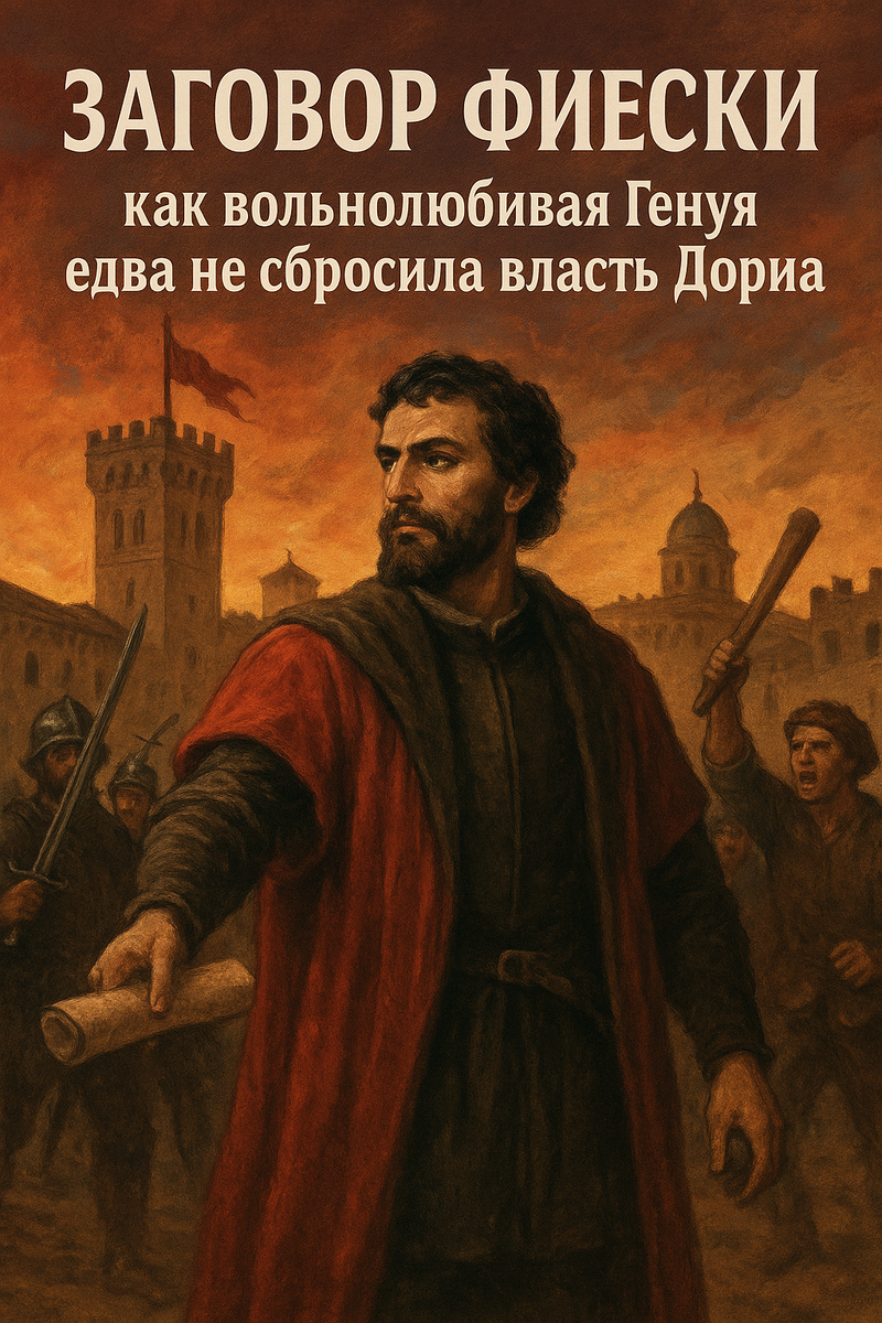 На этом фоне разворачивается одна из самых драматичных и малоизвестных страниц генуэзской истории — заговор Джованни Лодовико Фиески против Андреа Дориа, знаменитого адмирала, политика и «отца отечества». Эта история полна страсти, честолюбия, предательства и трагедии, достойной пера Шекспира или Макиавелли.