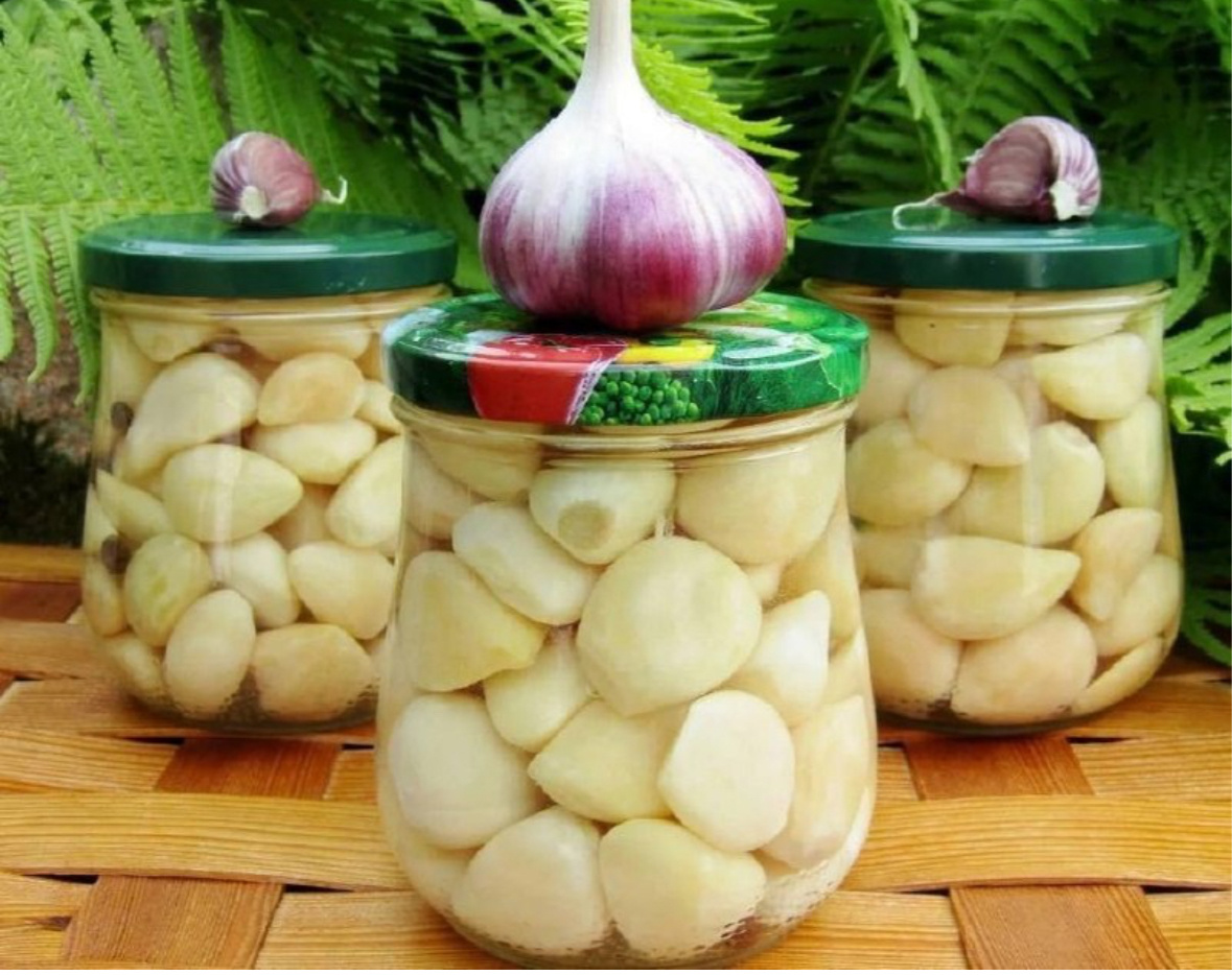 Всем привет. У всех на дачах созрел чеснок, пора его уже выкапывать, и мариновать чеснок в баночки. Хрустящий молодой маринованный чеснок дольками на зиму. А зимой нам чеснок просто не обходим, чеснок едят не только для удовольствия а ещё от простуды. Маринованный чеснок можно использовать в разных областях кулинарии, как в блюдах, так и для украшения мясных нарезок (он, кстати, прекрасен как самостоятельная закуска под водочку). Маринование чеснока - отличный способ не только для его сохранности, но и для придания вашим блюдам интереса и эксклюзивности. Маринованный чеснок - прекрасная приправа для приготовления гамбургеров и хот-догов. Для любителей острого его можно смешать с горчицей и приправить бутер. Для этого рецепта подходит только молодой чеснок. И зимой будет вкусная закуска. Давайте приготовим . Продукты рассчитаны на 1 литр. банку Ингредиенты 1,5 кг молодого чеснока 1л фильтрованной воды 3 шт лаврового листа 9 шт перца горошком 25 г соли 250 мл уксуса 9% 3 шт зонтика