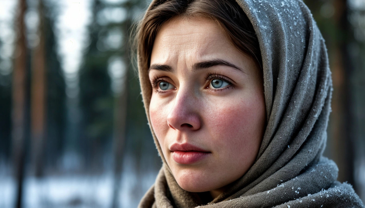 Шли несколько часов. Мороз крепчал. Мария едва передвигала ноги, её лицо покрылось инеем, ресницы слиплись. Степан иногда останавливался, давал ей отдышаться, делился водой из своей фляжки — не водой, а чем-то крепким, горьким, что обжигало горло, но возвращало к жизни.