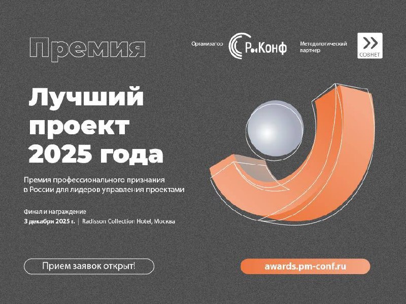 🚀 Стартует премия «Лучший проект 2025 года»! 3 декабря в Москве в рамках юбилейной 20-й конференции «Управление проектами» от Р-Конф выберут самых сильных в проектном менеджменте. 🏆 3 номинации 🌍 500+ участников 📈 Признание на международном уровне Если у вас есть проект, который заслуживает оваций — это ваш шанс! Методологическая поддержка от СОВНЕТ гарантирует прозрачность и честную оценку. К участию приглашаются компании и руководители проектов, программ, проектных офисов и владельцы портфелей. Прием заявок до 15 октября! 👉Подать заявку и узнать подробнее: awards.pm-conf.ru