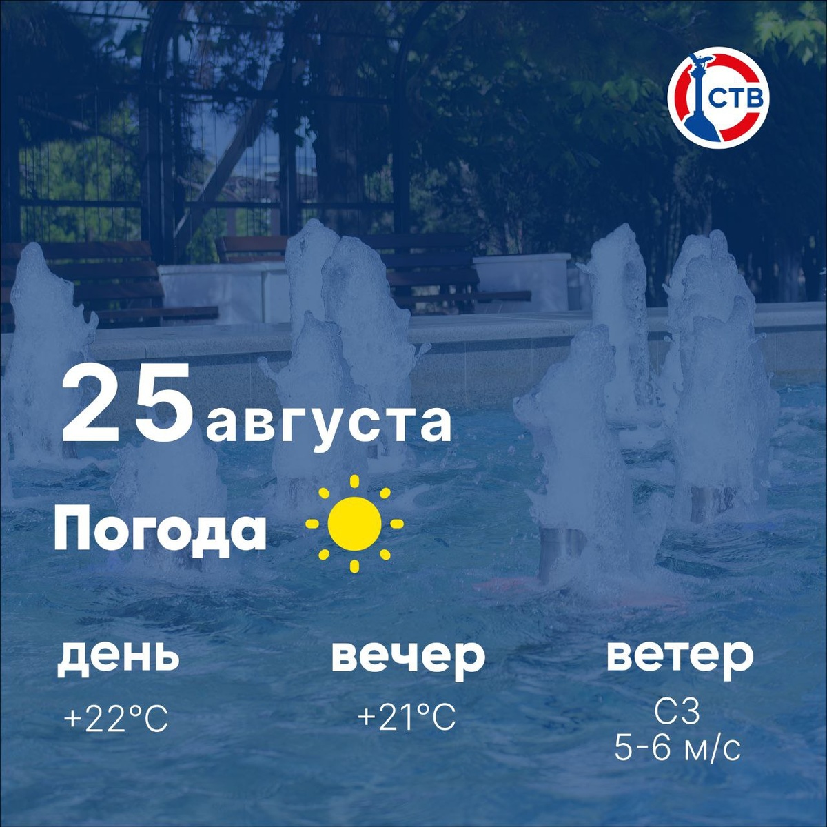 ☀️ Доброе утро, севастопольцы! Сегодня, 25 августа, в городе ясно. Погода продолжает нас радовать — море прогрелось до +27°. Желаем всем отличного начала недели и море позитива! 📺 Подписывайтесь на СТВ