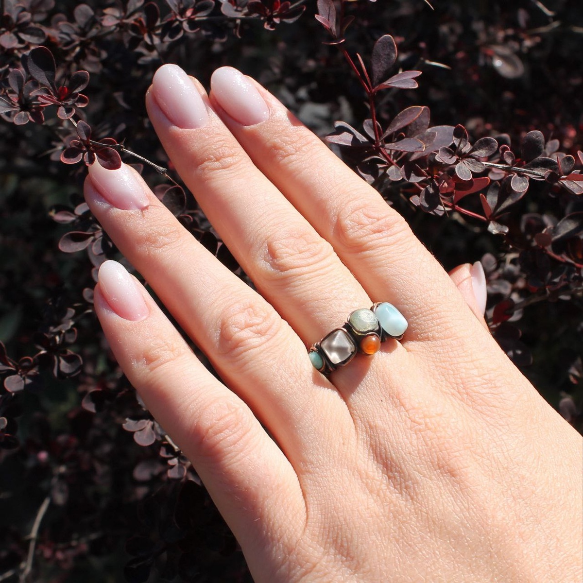 Широкое кольцо "Лёд солёного моря", с ларимаром Широкое медное кольцо с натуральными камнями. Ларимар, агат, амазонит, иолит, сердолик и стеклянная бусина чешского производства. Оригинальное украшение с интересным подбором цветов. Огонь и лёд, а ещё, наверное, что-то техническое - киберпанк и светящиеся окна виртуальной реальности! Медь текстурирована, прокована, покрыта патиной и отшлифована для проявления рисунка. Размер кольца 18,5 #медныесказки #ручнаяработа #медноекольцо #широкоекольцо #кольцоручнойработы #ларимар #украшенияручнойработы