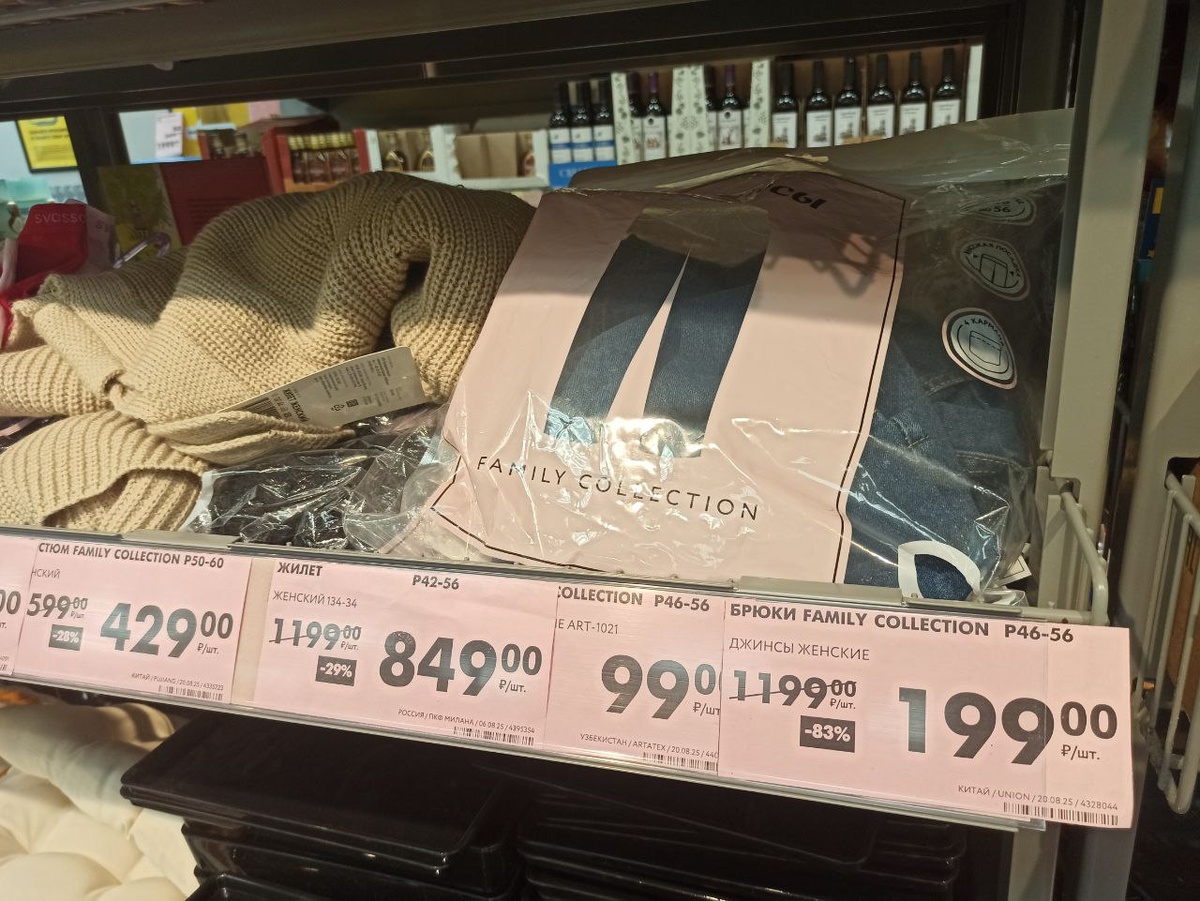 Если пенсия 15 000 руб., то надо знать места, где экономить. В Чижике большие скидки (джинсы 199 руб.)