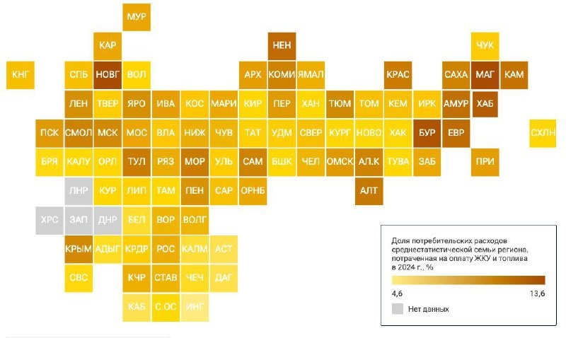 Марий Эл заняла 52 место в рейтинге РИА Новости по расходам на жилищно-коммунальные услуги в России. По данным на 2024 год, в среднем среднестатистическая семья в республике тратит на ЖКУ 9,6% от доли потребительских расходов. По итогам года сумма снизилась на 0,5 п.п. Если говорить о конкретной сумме денег, которую ежемесячно жители Марий Эл в среднем тратят на ЖКУ, то она по оценке экспертов составляет 4122,5 рублей. Для сравнения, Татарстан находится на 26-м месте (4926,2 рублей), Чувашия на 42-м (3860,6 рублей), Кировская область на 21-м (4624,5 рублей) и Нижегородская на 49-м (5698,3 рублей). На первом месте находится Ингушетия (3500,5 рублей). На последнем (85-м) Новгородская область (6611,6 рублей). 📸 Скрин: РИА Новости