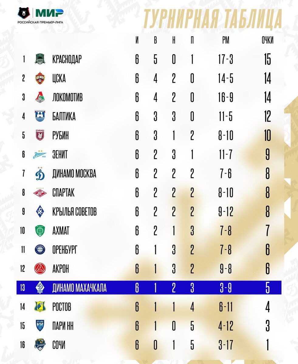 Турнирная таблица #МирРПЛ по итогам шести туров 📊 Время побеждать дома 🔜 ПОДДЕРЖАТЬ КОМАНДУ
