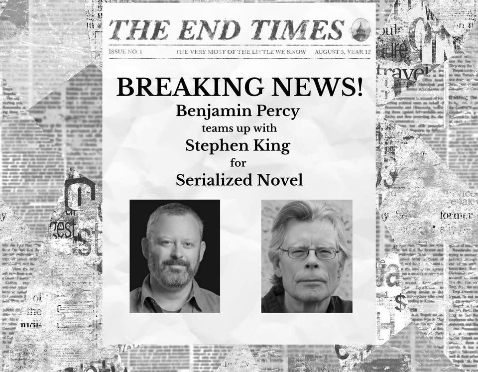 Известный писатель Бенджамин Перси (The Sky Vault) воплощает эту идею — и берёт с собой самого Кинга в качестве приглашённого автора — в новом сериализованном романе под названием The End Times для независимого хоррор-издательства Bad Hand Books.