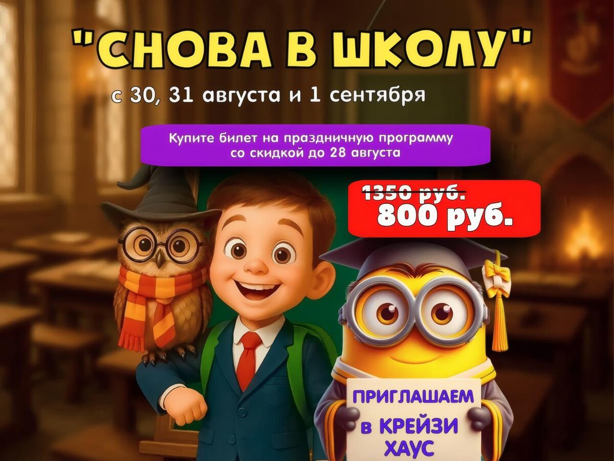 🔥 Снова в школу — только весело! 🔥 📅 30, 31 августа и 1 сентября — встречаем новый учебный год вместе с Крейзи Хаус! 🎉 💥 Забудьте про скучные линейки — у нас вас ждёт настоящий праздник эмоций: ✨ Игры в топовых локациях: - Зеркальный лабиринт 🪞 - Лазерный лабиринт 🔦 - Ленточный лабиринт 🌈 - Кнопочный бой ⚡️ - Лазерный тир 🎯 - Крейзи денс 💃 - Космо-бой 🚀 🎨 Эксклюзивный мастер-класс — «Весёлые монстрики», где дети создают свои яркие сувениры! 💎 Блеск-дискотека — свет, музыка и море драйва! 🔥 Авторская программа с ведущим, которая не даст заскучать ни секунды! 🎊 Начни учебный год так, чтобы надолго запомнилось — ярко, весело и вместе с друзьями! 🎟 Билеты и подробности по ссылке: 👉 https://l.clck.bar/735d1f