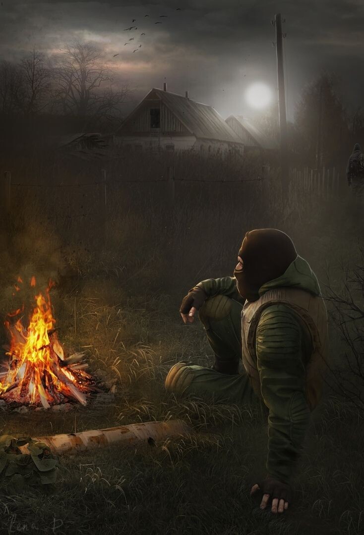 Ссылка на ТГ и ВК каналы 👆 Подписывайтесь, там мы сможем общаться, обсуждать новые темы, а так же, туда я выкладываю свои аудиокниги Ночь в Зоне – время, сотканное из теней и шепота. Звезды, словно глаза небесных наблюдателей, мерцают сквозь пелену тумана, высматривая крадущихся сталкеров. Треск костра – единственный живой звук, маяк в безмолвной тьме, вокруг которого пляшут призрачные тени, нашептывая свои, неведомые истории. У этого самого костра, на самом краю Кордона, столкнулись две судьбы, две биографии, умещающиеся в короткую фразу: «Только вчера из Деревни Новичков». Первый – Шнырь. Прозвище прилипло к нему, словно репей. Вечно озирающийся, дерганый, с глазами, полными затравленного любопытства. Второй – Камень. Пытался казаться матерым волком, но волк был лишь в его юношеских фантазиях. Говорил нарочито грубым басом, жестикулировал резко, стараясь во всем изобразить бывалого сталкера. Оба – наивные мечтатели, вырвавшиеся из колыбели безопасной, но скучной "гражданки". Костер