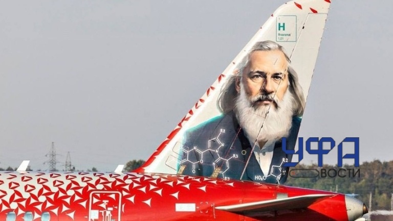 На хвосте воздушного суда изображен автор периодической системы химических элементов Дмитрий Менделеев. «Необычная тематическая ливрея создана в качестве дани уважения исследователю, который также совершил полет на аэростате: это было необходимо ученому для изучения верхних слоев атмосферы, а также наблюдения солнечного затмения», - сообщили в пресс-службе уфимского аэропорта.