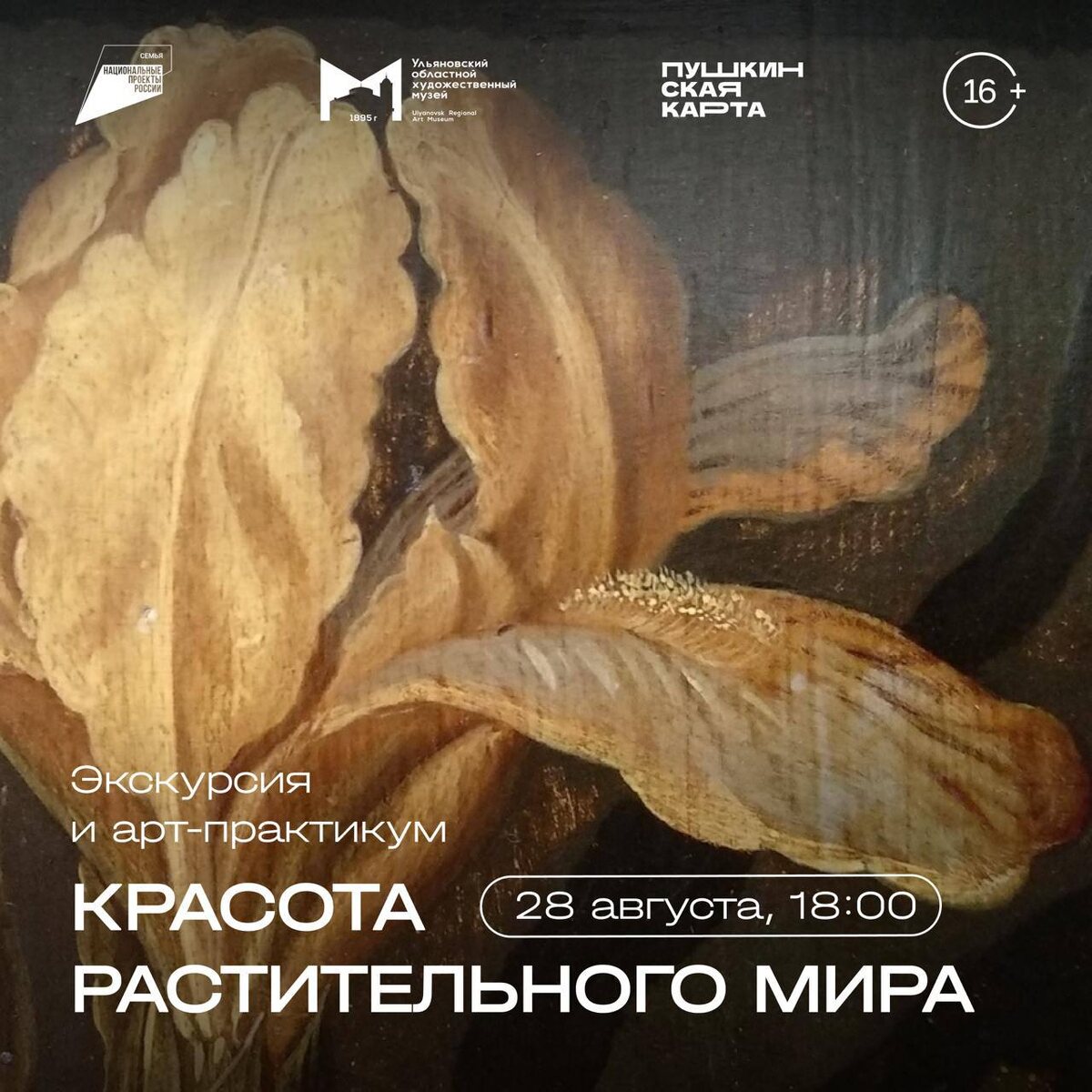 Экскурсия и арт-практикум «Красота растительного мира» 🗓️ 28 августа 18:00 📍Ульяновский областной художественный музей Под руководством мастера вы научитесь создавать уникальные коллажи из сухоцветов, которые станут украшением вашего дома и сохранят частичку летнего настроения. Вы узнаете много нового об истории искусства и роли растительных мотивов в нем, а также научитесь создавать красивые и оригинальные вещи своими руками. Билеты 🎟️ #28августа25
