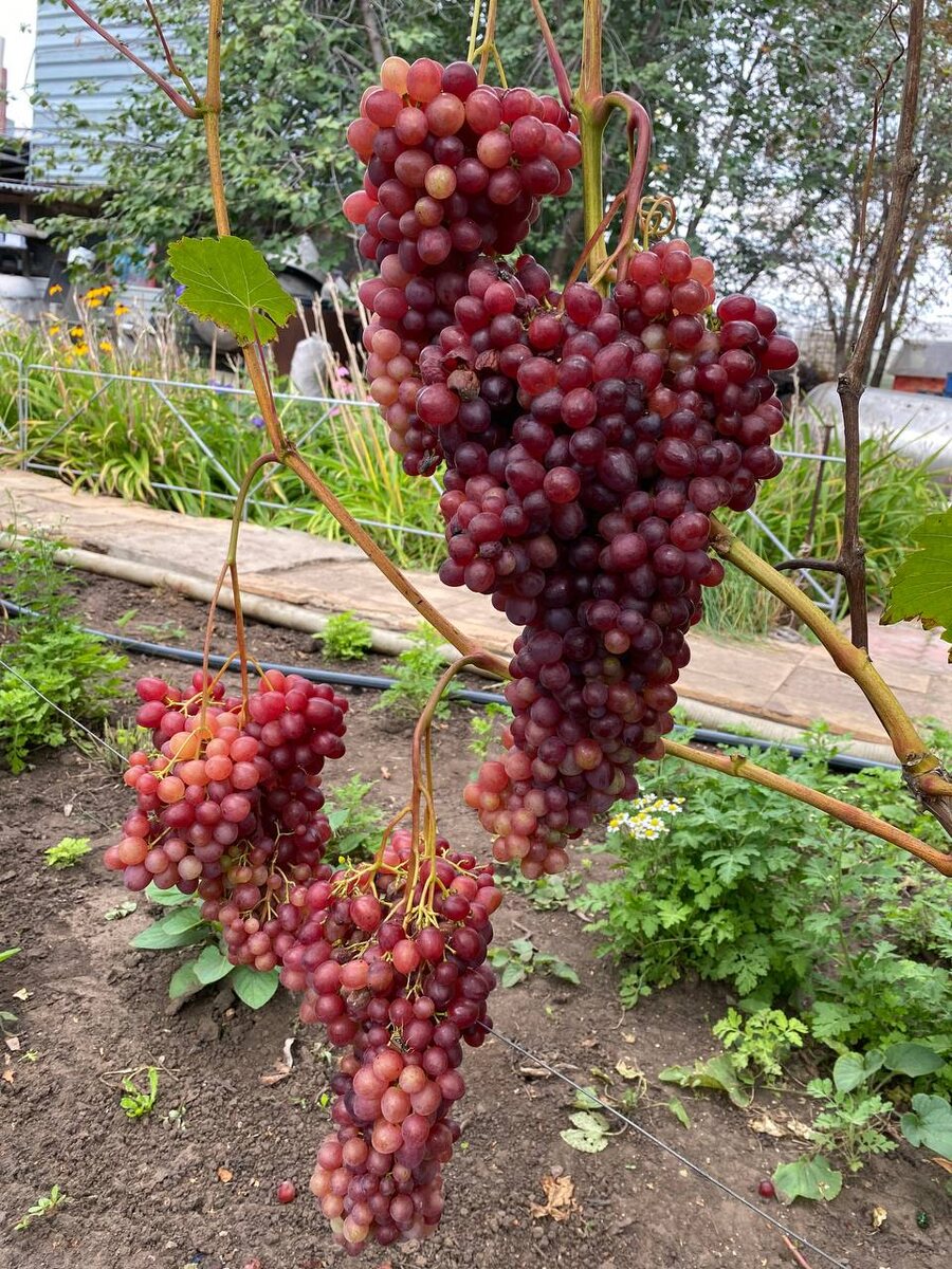 Велес в этом году бомба! Напомню, что это бессемянный сорт, автор Виталий Загорулько. Этот год для Велеса юбилейный, третий десяточек разменял! Он является межвидовым гибридом, полученным скрещиванием сортов София и Русбол, и у нас, кстати, где-то растут его папенька и маменька, но на самой удаленной площадке, поэтому оставлю вас без семейного фото, просто полюбуйтесь на красавца!