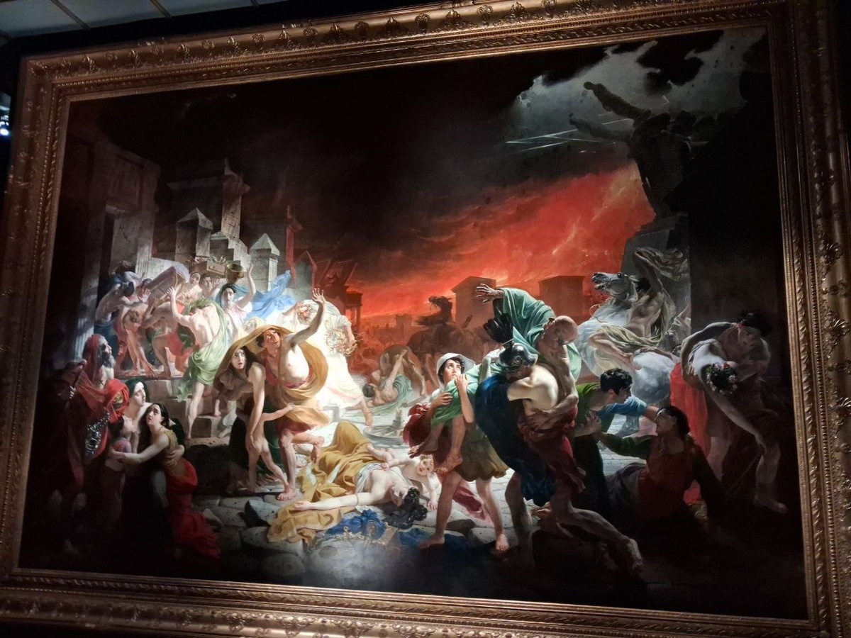 Последние дни Помпей выглядели несколько иначе, чем на картине К.П.Брюллова. Город постепенно утопал вулканических осадках и пепле. Но в эти страшные моменты проявлялось и величие человеческого духа и ужас перед иррациональным торжеством стихии и, иногда эгоизм и трусость. Большинство героев картины прекрасны и благородны. Мы теперь знаем, что многие жители Помпей успели спастись. Пожелаем этого героям картины, жителям прекрасного города, в котором мы провели весь сегодняшний день и несомненно успели его полюбить.