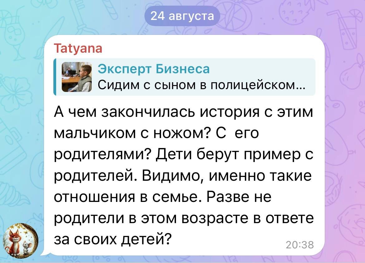Спасибо за комментарии, Друзья! История пока не закончилась, я так понимаю, дело передадут в опеку, а парня и его семью поставят на учёт, а также оповестят школу. Его Родители на момент инцидента не сделали никаких выводов и не принесли даже словесных извинений потерпевшему. Как говорится: от рябинки не родятся апельсинки 😏 Воспитывайте своих детей своим классным примером 🙏 и только так наше общество будет здоровым, счастливым и непобедимым!