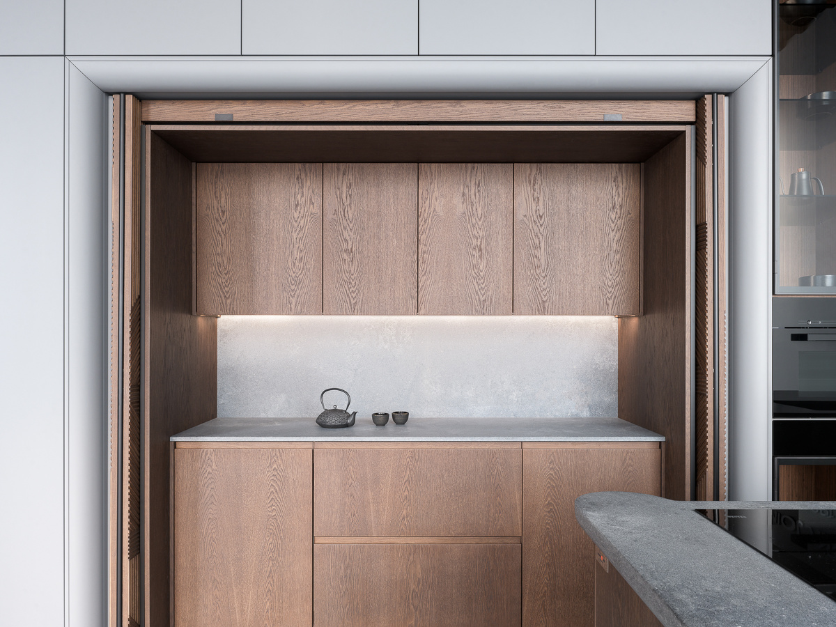 На примере нашей современной кухни из московского шоурума можно увидеть, как визуальная концепция и функциональность работают вместе. Внешне композиция выглядит минималистичной и цельной, но за фасадами скрываются продуманные технические решения. Центральная часть оснащена складными фасадами Blum REVEGO — именно они позволяют открывать или полностью скрывать рабочую зону. Внутри мы предусмотрели выдвижные ящики на системе Blum Legrabox с дополнительными внутренними ящиками, подходящими, например, для приборов и аксессуаров. Такая комбинация обеспечивает не только порядок, но и быстрый доступ к необходимому, при этом не нарушая общей геометрии кухни. Это пример того, как мы в Orange Park Joinery работаем над каждым проектом: совмещаем чистоту линий и актуальные тренды с технологичными решениями, чтобы кухня была одновременно красивой и удобной в использовании. Фото: Krasyuk Production