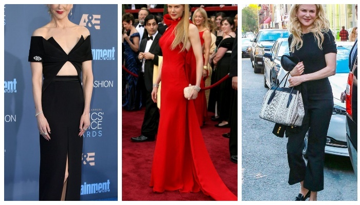 Образы Николь Кидман, неизменно выделяющиеся своей неординарностью, не оставляют равнодушными ценителей моды и красоты. Звезда, обладающая неподражаемой элегантностью и магнетизмом, является воплощением гармонии между привлекательностью и чувством стиля. Девушка с золотистыми волосами, облачённая в алое платье с изысканной отделкой, становится центром внимания благодаря насыщенному цвету наряда и его необычным элементам. Николь Кидман демонстрирует элегантное черное платье-пиджак и это выглядит очень эффектно. Наряд подчеркивает стройность фигуры актрисы, придает ей изящество и грацию. Мягкое и воздушное платье делает образ Николь романтичным и изысканным. Особое очарование образу актрисы добавляет оригинальное платье, украшенное шитьем, с юбкой и рукавами плиссе. Красный цвет очень идет блондинкам, и Николь в этом уверена. Поэтому у актрисы так много образов в красном, которые подчеркивают ее красоту и выделяют страсть. Темно-розовое платье в пол добавляет особый шик привлекательному