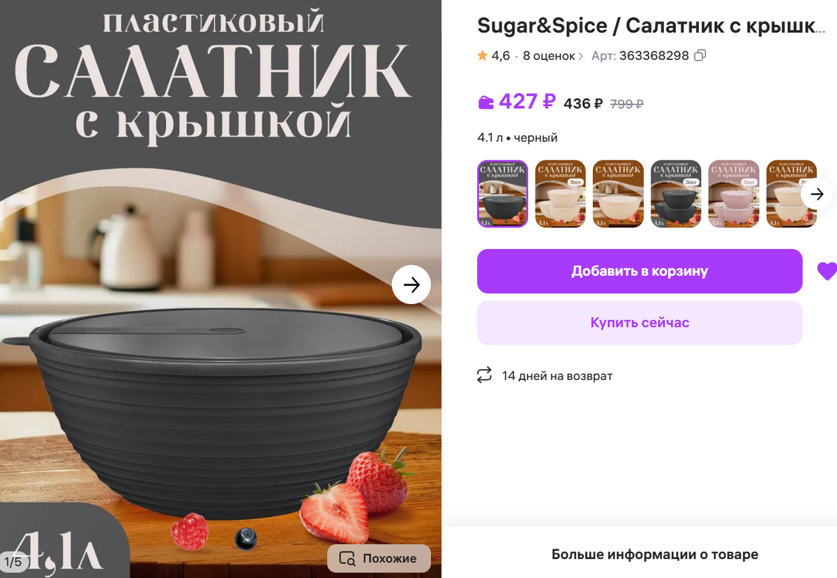 Тогда я пошла другим путем. Полезла смотреть керамические салатники для своих суккулентов. Там много интересных на маркетплейсах, подходящих по стилю к моим уже имеющимся вариантам посуды. И вот тут-то меня осенило. А не глянуть ли пластиковые салатники? Та же самая широкая миска и больше шансов нарыть нужного объема и цвета. И я, таки, нашла!
