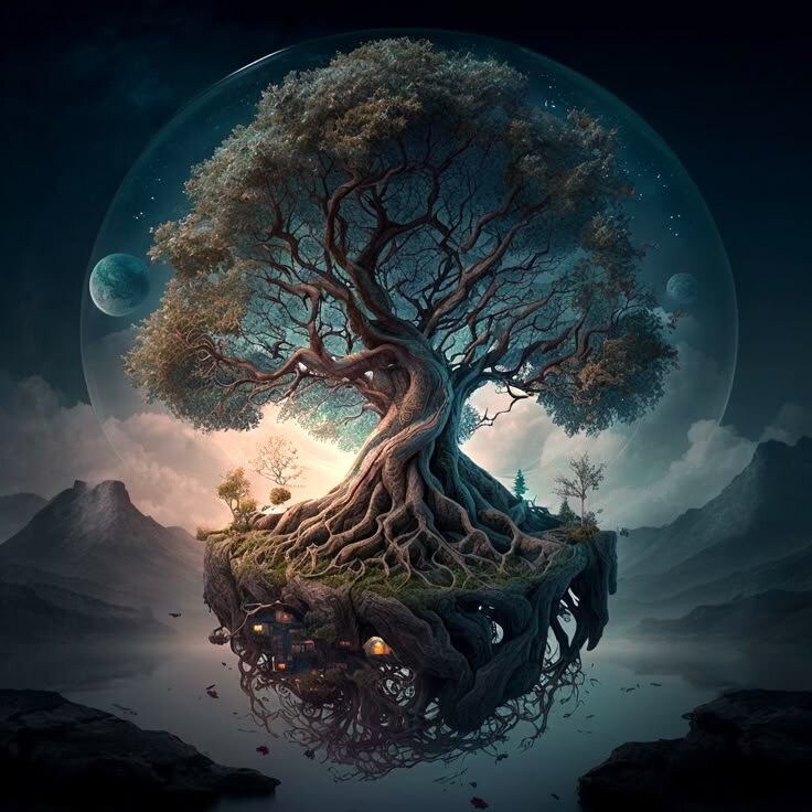 - Скандинавия: мир рождается из тела первобытного великана Имира, убитого богами. Из его костей сделаны горы, из крови — моря, из черепа — небо. Мир держится на мировом дереве Иггдрасиль. Здесь с самого начала чувствуется суровость и жестокость бытия.