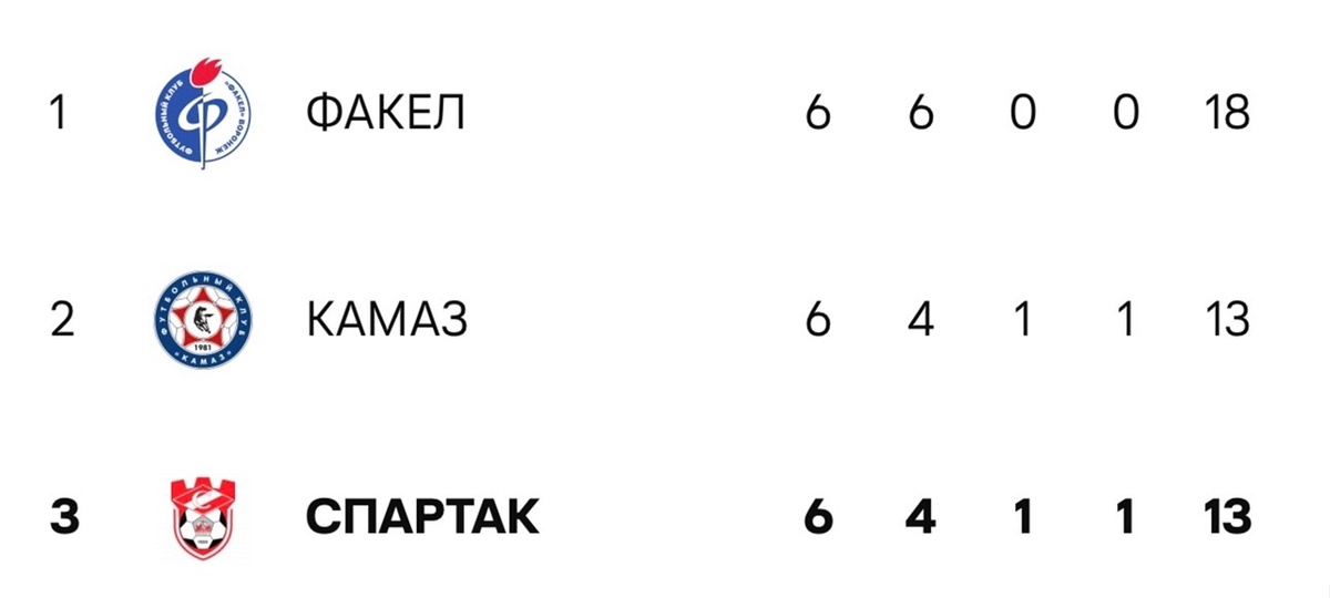 Костромской «Спартак» вошел в тройку лидеров после победного матча с ФК «СКА-Хабаровск». Теперь костромичи соседствуют с «Камазом» из Набережных Челнов и с «Факелом» из Воронежа. Последний соперник стал единственным, кто пока что сумел обыграть красно-белых.