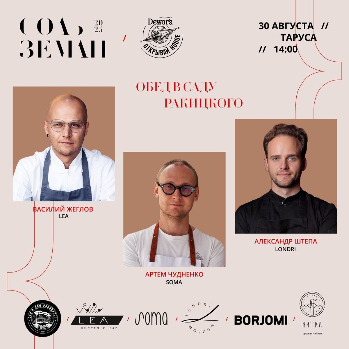 Друзья, напоминаю еще раз – проводить лето можно и нужно в нашей компании, в саду Ракицкого, на внеочередном обеде в рамках фестиваля «Соль Земли». Прекрасные шефы Артем Чудненко и Александр Штепа, прекрасный бартендер Василий Зайцев, шотландский виски Dewar's и коктейли на нем, легендарная минеральная вода Borjomi, чай от «Нитки», экскурсия по Тарусе от бывшего мэра города и я, ваш конферансье и метрдотель. Билеты, кажется, еще есть по ссылке. 🧂 @saltmagazine