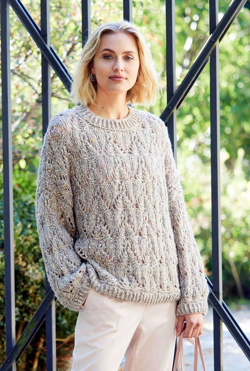 Серо-бежевый твидовый пуловер свободного кроя с фантазийным узором ♥