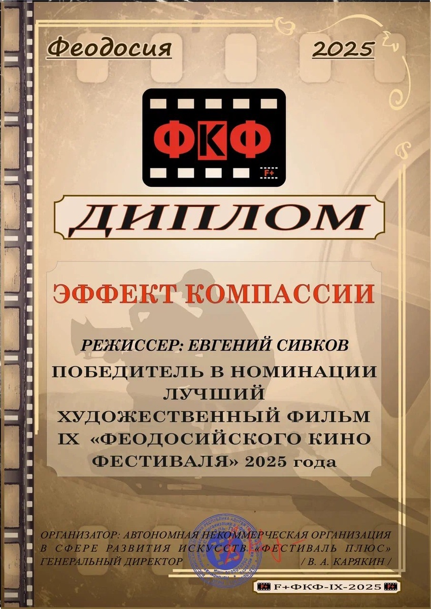 🎬 ЭФФЕКТ КОМПАССИИ — ЛУЧШИЙ ХУДОЖЕСТВЕННЫЙ ФИЛЬМ! 🏆 🔥 Радостная новость с IX «Феодосийского Кино Фестиваля» 2025: наша картина «Эффект Компассии» признана лучшим художественным фильмом года! 🙏 От всей души благодарим оргкомитет фестиваля и лично генерального директора «Фестиваль Плюс» Виталия Карякина за высокую оценку и вдохновляющие слова! Это победа всей нашей команды — от сценаристов до последнего винтика у робота Кати 🤖 🎥 Это история о том, как добро — даже самое тихое и скромное — способно менять судьбы. Спасибо всем, кто верил в наш фильм и помогал ему найти дорогу к зрителю. #ЭффектКомпассии #ФеодосийскийКиноФестиваль #лучшийфильм #российскоекино #доброкино #кинопремьера #compassioneffect #кинопобеда