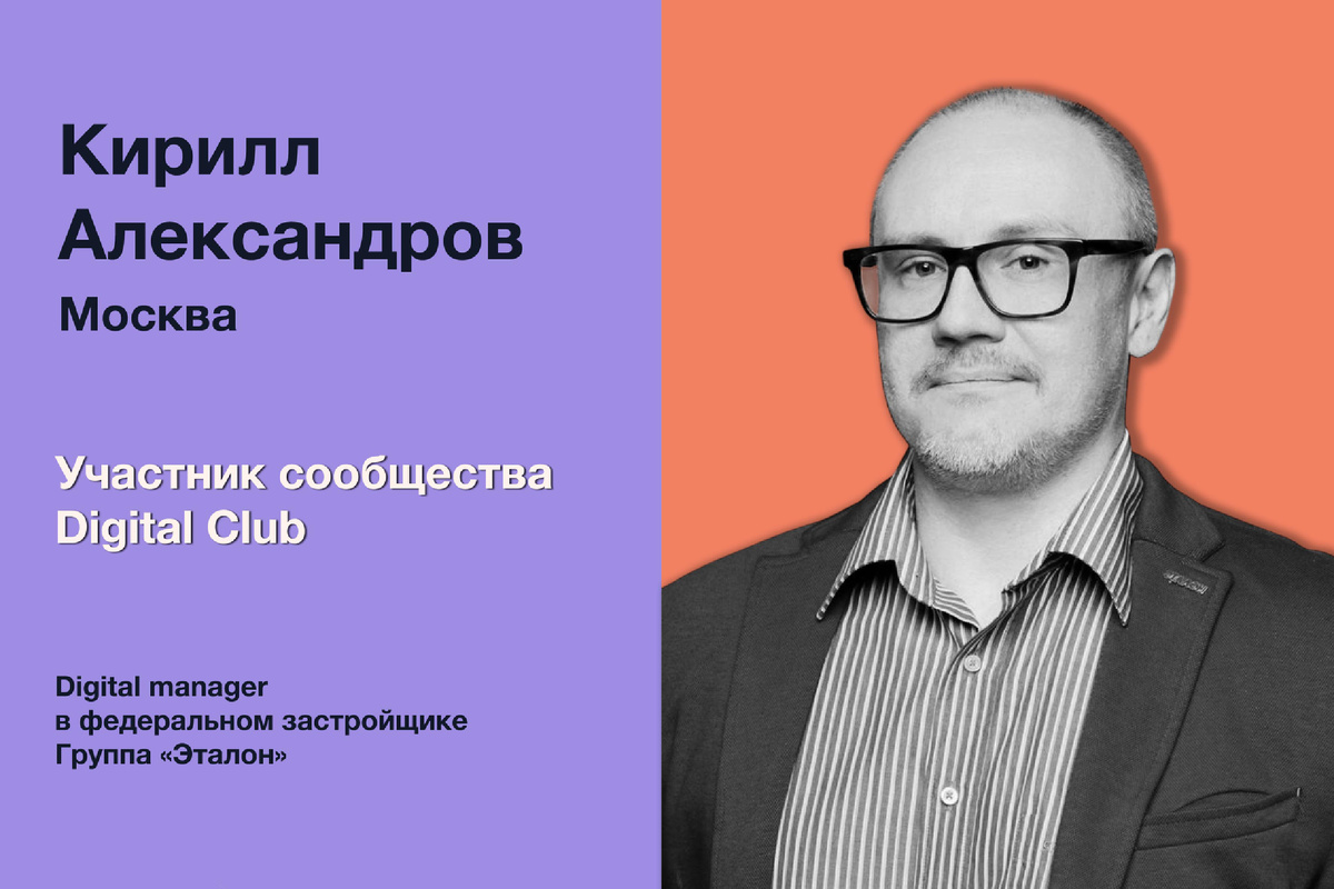 Сегодня наш гость – Кирилл Александров. Кирилл – участник сообщества Digital Club, а также Digital manager в федеральном застройщике Группа «Эталон».