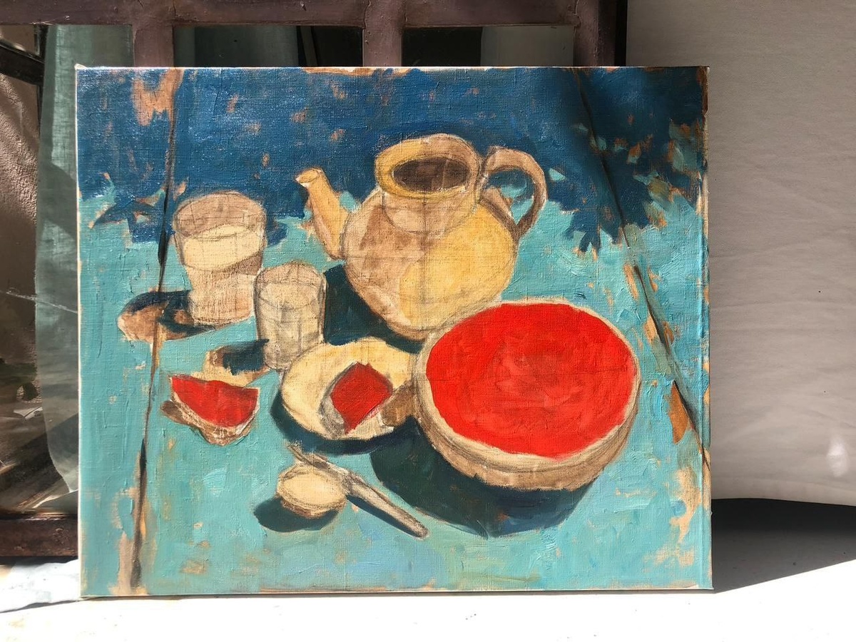 Красный в живописи - один из самых непростых цветов. Энергетически максимально насыщенный, в картинах занимает обычно не более 30% пространства. Его очень хорошо использовать в качестве акцентов. Диапазон красного неимоверно богат, может быть агрессивен, драматичен или лирически радостен, в зависимости от температуры оттенка. Несмотря на свою насыщенность, красный в чистом виде достаточно светлый цвет. Это ещё один из моментов, определяющий его сложность использования в живописи, особенно для новичков. Справиться с этой задачей можно только практикуясь. Проще всего это делать в натюрмортах. Сегодня попробуем 🎨 Ждём всех желающих на 2-й день марафона "ВКУС СОЛНЦА"🍉 В 12:00 по Мск Напишем прекрасный летний натюрморт✨ Кто пропустил, ещё не поздно подключиться✨ 1-й день можно посмотреть в записи в ВКонтакте и на YouTube 2-й день - сегодня в 12:00 по Мск, ссылки придут незадолго до начала. Регистрация здесь 👉 https://paint.art-class.online/taste_sun?utm_source=tg_post До встречи! Жд