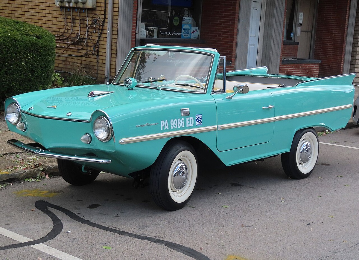 В 1961 году на Женевском автосалоне публика ахнула: перед ними был не просто кабриолет, а... автомобиль-амфибия с двумя винтами под задним бампером. Кто-то восхищённо фотографировал диковинку, кто-то недоумевал — что это вообще такое? Так миру представили Amphicar Model 770 — первую и единственную серийную амфибию для гражданского использования, допущенную к езде и по дорогам, и по воде. Машину, которая могла ехать, а могла и... плыть. Идея, опередившая время Создателем Amphicar стал немецкий инженер Ганс Триппель, ранее работавший над военными амфибиями для Вермахта. Однако после войны он переключился на мирные технологии и решил создать нечто уникальное — легковушку, способную передвигаться по воде без всяких лодок и катеров. Производство наладили в Западной Германии: сначала в Любеке, затем в Берлине. Название Model 770 отражало технические параметры машины: 7 узлов по воде и 70 миль в час по суше (то есть примерно 12,8 км/ч на воде и 113 км/ч на асфальте). Как устроен Amphicar? На