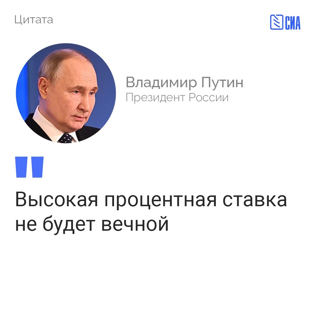 Путин: высокая процентная ставка не будет вечной