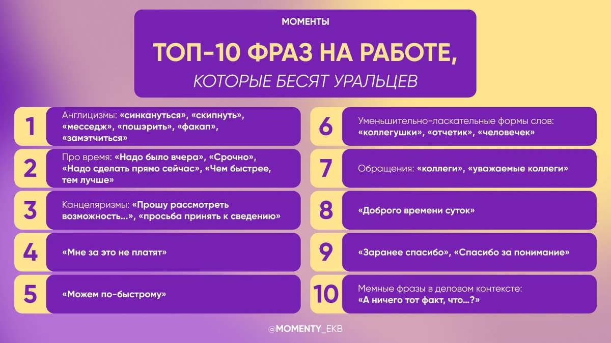 Скипнем формальности и сразу донесем до вас месседж: выяснили, какие фразы чаще всего раздражают уральцев на работе