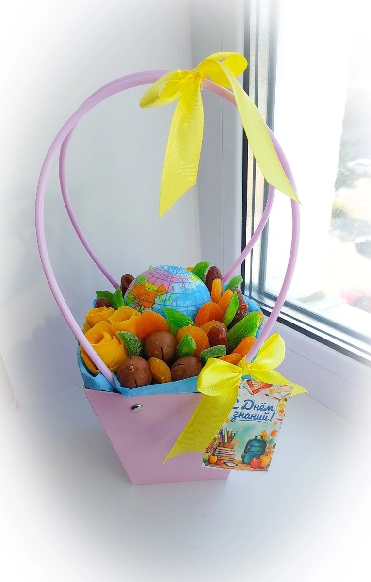 БУКЕТ любви и заботы для любимого УЧИТЕЛЯ ! Представьте себе начало учебного года — свежесть сентябрьского утра, звонкий смех детей и аромат... орешков и сухофруктов? Да-да, именно так! Я приготовила для вас особенный подарок, полный витаминов и нежных чувств. Ведь забота — это лучший способ сказать СПАСИБО за терпение, вдохновение и любовь к детям. Что же входит в этот удивительный букет? ✔️ Орешки — символ мудрости и силы духа, дающие энергию и бодрость на весь учебный год. ✔️ Сухофрукты — сладость жизни и заряд позитива на каждый урок. ✔️ Маленькие сюрпризы внутри — улыбка ученика, доброе слово родителей и искренняя благодарность. Я хочу всем учителя пожелать здоровья, радости и бесконечного вдохновения. Пусть ваши ученики будут послушными, уроки увлекательными, а настроение всегда солнечным!