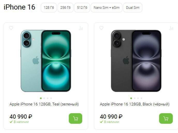 Цены на iPhone 16 упали до рекордных 41 000 рублей с начальных 110 000 рублей