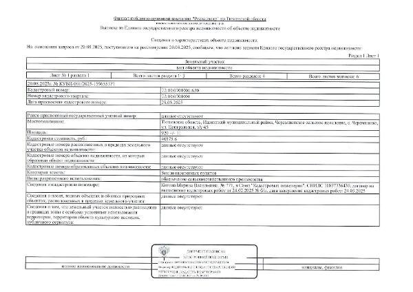 Название: Земельный участок, расположенный по адресу: Тюменская область, Ишимский муниципальный район, Черемшанское сельское поселение, с