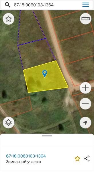 Название: Земельный участок с кадастровым номером 67:18:0060103:1364 площадью 1238 кв.м., относящийся к категории земель населенных пунктов