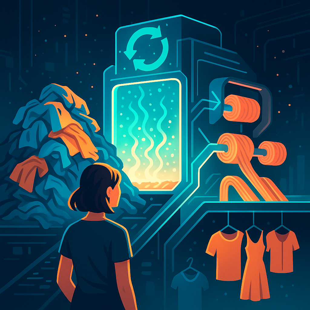 Мода — одна из самых ресурсоёмких индустрий. Чтобы произвести футболку, нужно 2700 литров воды, а чтобы вырастить хлопок — гектары земли. С другой стороны, каждый год в мире выбрасываются миллионы тонн одежды. Задача — замкнуть этот цикл: сделать так, чтобы старые вещи становились сырьём для новых. Инновационные технологии переработки текстиля помогают решить эту проблему. Одна из самых перспективных технологий — химический рециклинг волокон. Традиционная переработка собирает старую одежду, сортирует её, измельчает и из этих хлопковых «хлопьев» прядёт новые нити. Но качество таких нитей ниже. Химический метод использует растворители, которые расщепляют ткань на молекулы. После очищения и полимеризации получают первоклассное волокно, не уступающее девственному. Шведская компания разработала технологию растворения целлюлозных тканей и создания из них нового вискозного волокна. В результате старые джинсы превращаются в новые платья. Второй подход — смешанные материалы. Большинство соврем