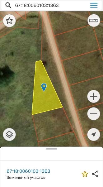 Название: Земельный участок с кадастровым номером 67:18:0060103:1363 площадью 1005 кв.м., относящийся к категории земель населенных пунктов