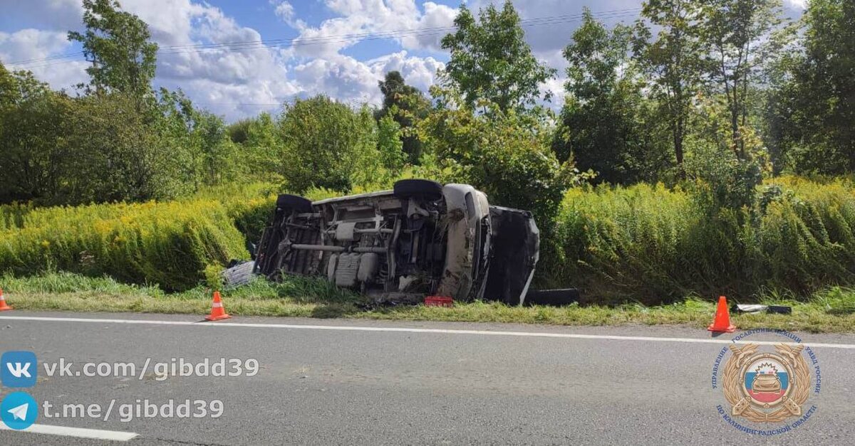 Зеленоградский район По предварительным данным, 24.08.2025 года в 13:00 на 11 км 500 метров автодороги «Романово - Калининград» двигался автомобиль «Мерседес» под управлением 47-летнего водителя, который на прямом участке дороги не справился с управлением и допустил съезд в кювет справа по ходу движения с последующим опрокидыванием. ❕В результате ДТП водитель получил телесные повреждения. ⚠️Нарушение, повлекшее возникновение ДТП: - несоответствие скорости конкретным условиям движения.