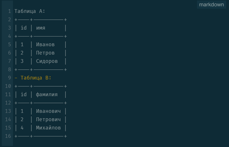 RIGHT JOIN - это тип соединения таблиц в SQL, который возвращает все строки из правой таблицы и соответствующие строки из левой таблицы. Если в левой таблице нет соответствующих строк, то в результате будут отображены NULL-значения. RIGHT JOIN работает следующим образом: Например, если у нас есть две таблицы: Если мы хотим соединить эти две таблицы, используя RIGHT JOIN, мы получим: Результат: Как видите, RIGHT JOIN вернул все строки из правой таблицы и соответствующие строки из левой таблицы. Если в левой таблице нет соответствующих строк, то в результате будут отображены NULL-значения. RIGHT JOIN часто используется, когда нужно получить все строки из одной таблицы и соответствующие строки из другой таблицы, даже если в другой таблице нет соответствующих строк.