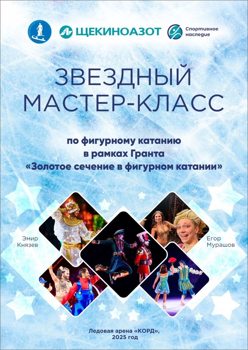 Уже завтра юных фигуристов, тренирующихся в Ледовой арене «Корд» (под патронатом компании «Щекиноазот» и АНО «Спортивное наследие»), ждет незабываемое событие – мастер-класс, который проведут звезды российского фигурного катания. В рамках воплощения грантового проекта «Золотое сечение в фигурном катании», победителем которого стало АНО «Спортивное наследие», 40 юных фигуристов получили возможность прикоснуться к миру большого спорта, получить ценные знания от настоящих профессионалов. Специально приглашенные тренеры и звезды шоу Татьяны Навки Эмир Князев и Егор Мурашов поделятся с нашими ребятами секретами мастерства, вдохновят их на новые победы! Как отмечают в ЛА «Корд», такие встречи не только повышают уровень спортивного мастерства юных фигуристов, развивают потенциал детей, но и популяризируют этот вид спорта в регионе. Стоит отметить, что занятия в ЛА «Корд» для юных фигуристов и хоккеистов абсолютно бесплатны, поддержку учреждению оказывает компания «Щекиноазот» в рамках реализа