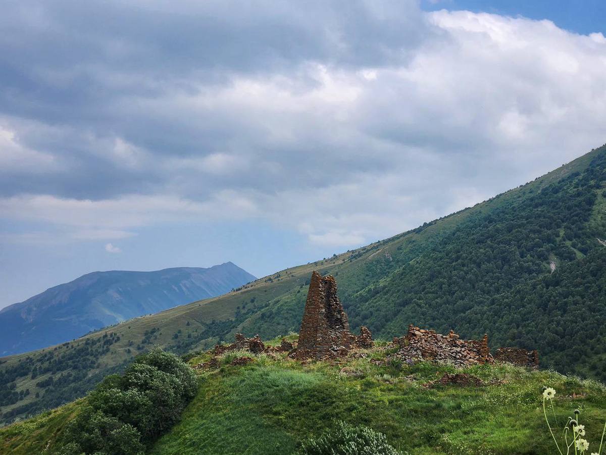 «В селении Камсхо — святилище Мады Майрам, справа — святилище Уацилла. Еще выше, на самой горе — святилище Хуцау Дзуар, святилище Уастырджи. Еще одно из интересных святилищ, найденных нашей экспедицией в 2019 году, — это святилище Фалвара», — отметил Владимир Чшиев.