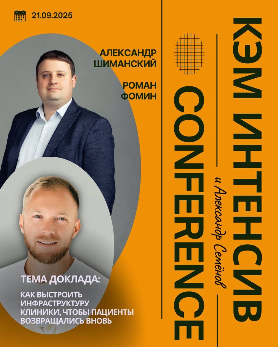 🦷 Команда DentalPRO примет участие в конференции «КЭМ Интенсив» Друзья, не за горами осень. А осень — это очень продуктивное время для обучения! Одной из точек в нашем календаре мероприятий станет конференция «КЭМ Интенсив» от DR.FRIDMAN SCHOOL и Александра Семёнова. Что подготовила команда DentalPRO: 💠 Фирменный стенд — в нашей зоне можно будет узнать о будущем стоматологического IT, задать вопросы и увидеть новинки нашей МИС 💠 Совместное выступление Александра Шиманского (создатель DentalPRO) и Романа Фомина (основатель сервиса «ПроЛояльность») Вместе эксперты расскажут о том, как выстроить инфраструктуру клиники, чтобы пациенты вновь возвращались 👌 ⚡️ «КЭМ Интенсив» — одна из самых продуктивных площадок для владельцев и руководителей стоматологий. Мероприятие соберёт на одной площадке ведущих экспертов из отрасли. Конференция состоится 21 сентября в Москве. ⛓️💥 Узнать подробнее о мероприятии #Мероприятия