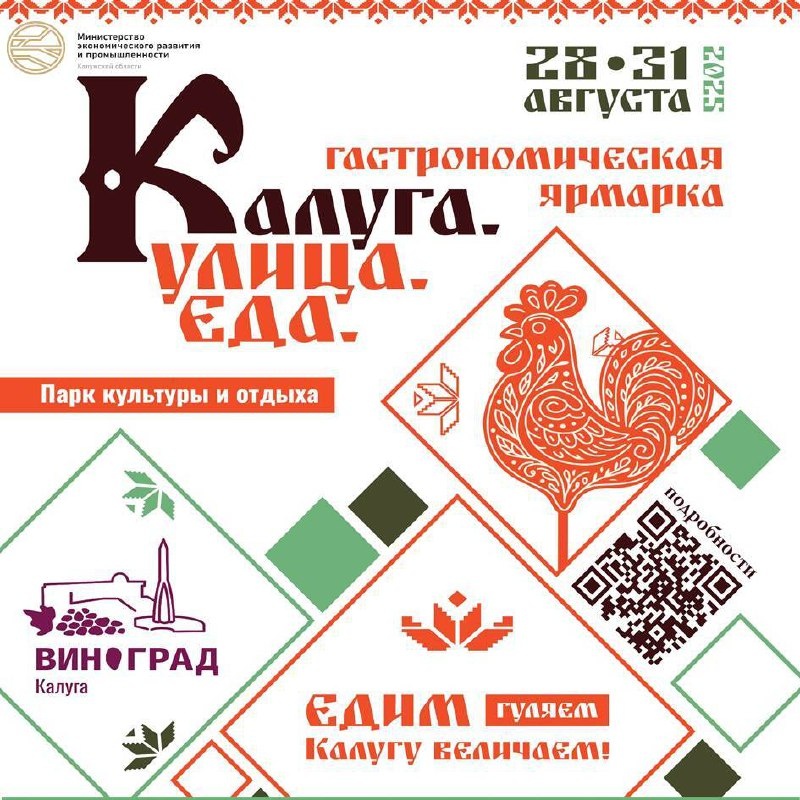 🌟 Осталось всего пара дней до старта грандиозного гастрономического путешествия «Калуга. Улица. Еда.» 🍽 ⚡ Колорит Дагестана, уют Калининграда или многогранность Калуги? Необязательно отправляться в дальнюю дорогу, ведь уже совсем скоро вас ждёт настоящий праздник вкуса и творчества! ✨ 🥗 Что ждать от праздника: ☕ 70 гастрономических проектов; 🍷 20 производителей качественного российского вина; 🎭 120 талантливых калужских мастеров. 💃🏻 Для детей и взрослых здесь найдётся масса интересного: яркие фотозоны, захватывающие музыкальные концерты, интересные мастер-классы и незабываемые кулинарные шоу с участием лучших шеф-поваров региона! 😋 Время: с 28 по 31 августа. Место: Парк культуры и отдыха. Готовьтесь к настоящему гастрономическому приключению! До встречи на празднике еды в Калуге!