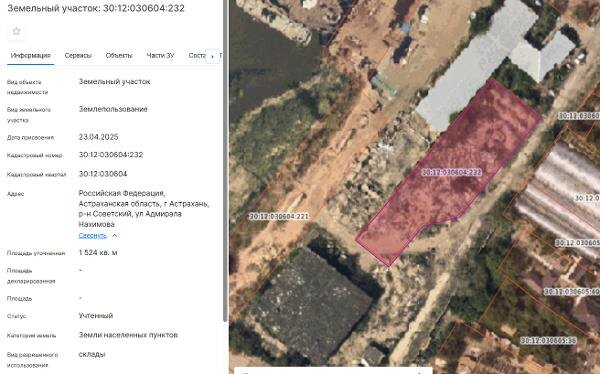 Название: Земельный участок площадью 1524 кв.м., расположенный по адресу: Российская Федерация, Астраханская область, г