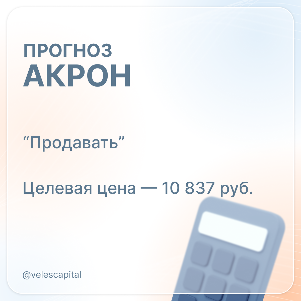 💼Акрон 26 августа представит финансовые результаты по МСФО за II квартал 2025 года 💼Мы ожидаем, что компания нарастит выручку на 48,3% г/г, до 65,8 млрд руб., благодаря более высоким продажам и ценам реализации удобрений. EBITDA увеличится на 47,2% г/г, до 25,8 млрд руб., с рентабельностью 39,2% против 39,4% годом ранее. 💼Свободный денежный поток Акрона во 2-м квартале 2025 г. окажется отрицательным на фоне оттока средств в оборотный капитал. 💼По итогам 2023-2024 гг. компания придерживалась годовой периодичности выплат акционерам, в связи с чем мы не ожидаем рекомендации промежуточных дивидендов в текущем году. 💼Наша рекомендация для бумаг Акрона – «Продавать» с целевой ценой 10 837 руб. Аналитик: Василий Данилов Не является индивидуальной инвестиционной рекомендацией. Подробнее: https://veles-capital.ru/analytics/article/akron_prognoz_rezultatov_2k25_msfo/ #AKRN #ВЕЛЕС_Капитал