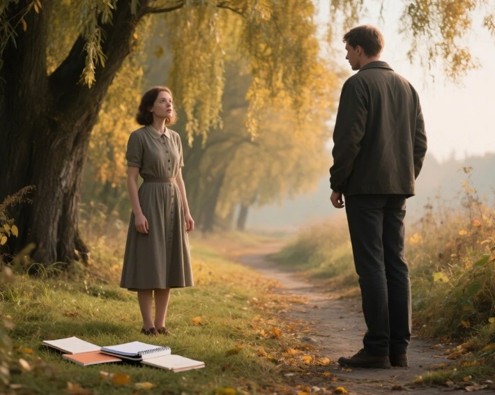Он шагнул к ней. Неуверенно, медленно. Наклонился, стал собирать тетради. А она так и стояла. Потом опустилась на колени рядом, и их руки встретились. Простое касание. Он накрыл ее ладонь своей. Она не отняла.