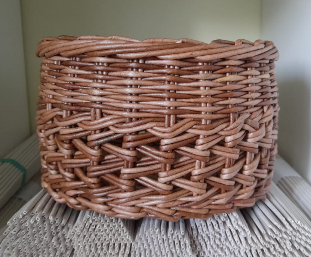 Вот такая шкатулочка у меня вчера сплелась: Захотелось повторить узор, который нашла в мк у Марины Паркиной. А потом что-то пошло-поехало: и веревочку приплела, и ситец, а закончила розгой в четыре трубочки. И вот итог: Что мне в моей новой поплетушке нравится: 1. Цвет трубочек. Убей меня, не помню, чем красила. Нужно записывать, но что-то не получается. 2. Увлажнение трубочек. Они получились пластичными, заломов практически не было. Как мне это удалось - отдельная тема, сегодня попробую снова увлажнить тем способом, который изобрела, если получится, поделюсь. Нет, буду дальше экспериментировать. 3. У Марины мне очень понравился ее способ установки стоек. Я так еще не пробовала, получилось просто класс! 4. Узор у Марины мне поначалу показался чересчур дырявым, но у меня трубочки были тоньше и смотрится он уже по-другому. Мне нравится, а вам? 5. Еще ни разу не делала загибку розгу в четыре прута, очень понравилась. Надо попробовать еще в пять пруточков. Если интересно, что у меня получ