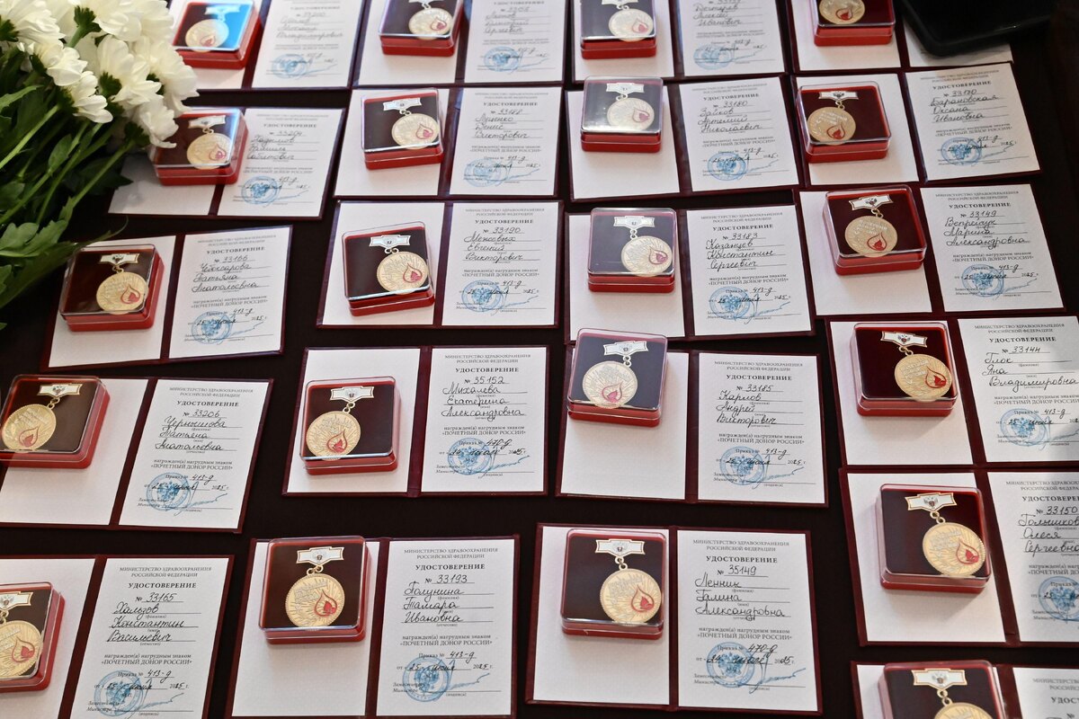 22 августа, в День государственного флага, в Правительстве Новосибирской области нагрудные знаки «Почетный донор России» получили 20 жителей региона. Один из награжденных – замгубернатора Новосибирской области, заслуженный работник здравоохранения РФ Константин Хальзов. «Доноры – это те люди, которые отдают часть своей жизни, часть своего организма, чтобы спасти десятки, сотни и тысячи жизней. Примите огромную благодарность от них и от нас, медицинских работников», – обратился к донорам, вручая награды, министр здравоохранения региона Ростислав Заблоцкий. Звание «Почетный донор России» можно получить после 40 донаций крови или 60 донаций плазмы. Всего нагрудные знаки в торжественной обстановке сегодня вручили 20 жителям Новосибирской области. «Я продолжаю сдавать кровь, – подчеркнул Константин Хальзов после получения награды. – Хотя бы дважды в год, на Новый год и во Всемирный день донора в нашем Центре крови. Если получается, то чаще. После вручения награды все не заканчивается, потом