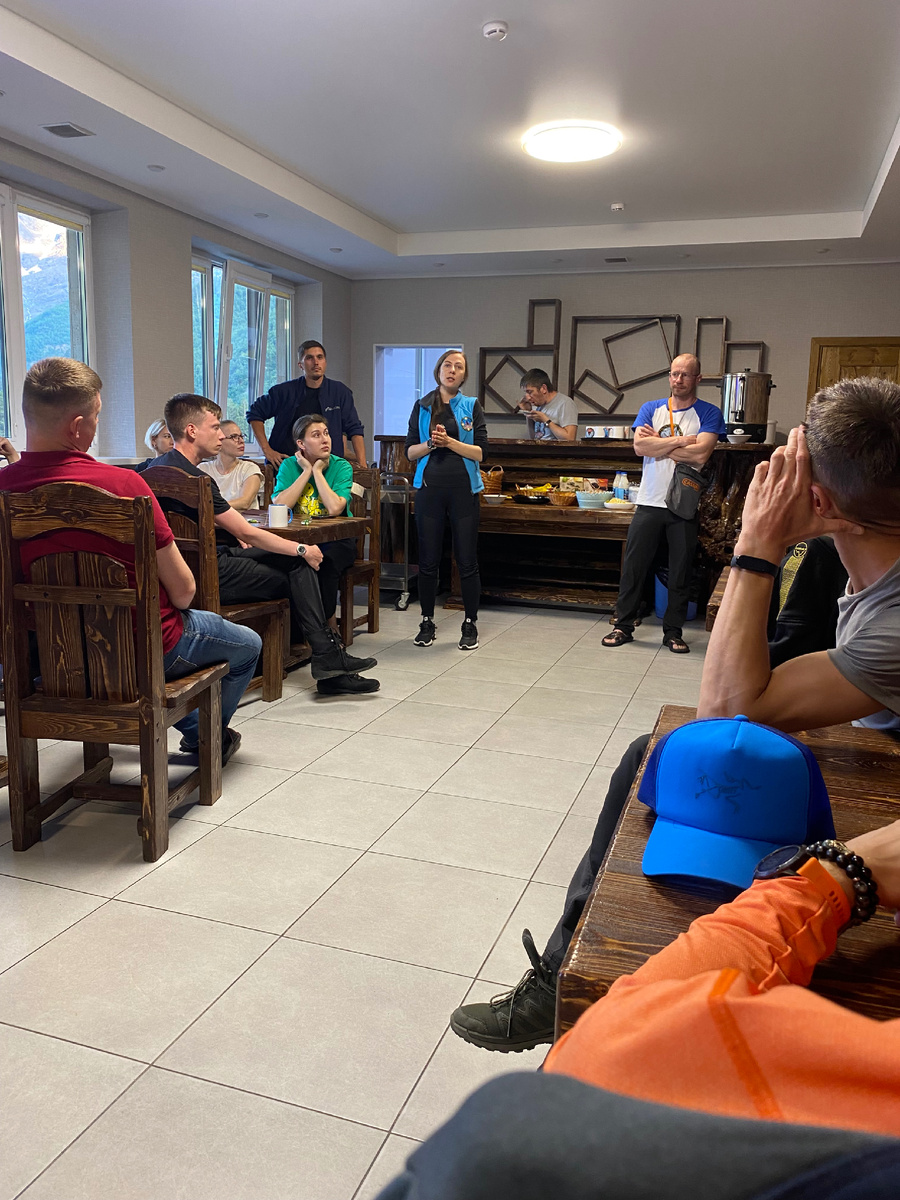 Всё начинается с приезда в Минеральные Воды. Туда вы прилетаете или приезжаете на поезде. Вас встречают и везут в село Терскол. Это маленькое, но самое высокое село в России, которое находится на высоте 2300 метров. Первый день вы просто заселяетесь, разбираете чемоданы, вечером всех участников распределяют к гидам в группы. Кажется, что будет легко, но это только начало😉